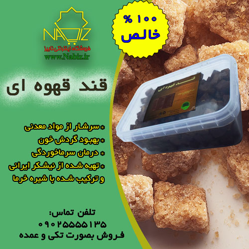 قند قهوه ای محصول فروشگاه نابیز سرشار از مواد معدنی بوده و نیز برای بهبود گردش خون این قند تهیه شده از نیشکر ایرانی است که ترکیب شده با شیره خرما می باشد.